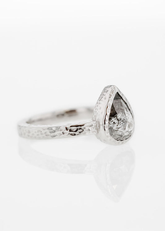 The Leda | 1.58ct Pear Salt and Pepper Diamond | 18k White Gold