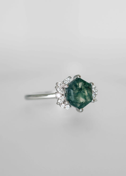 The Talia | 1.74ct Hexagon Moss Agate | White Gold