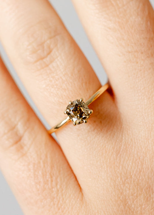 The Helia | .92ct Cushion Cut Champagne Diamond | Yellow Gold