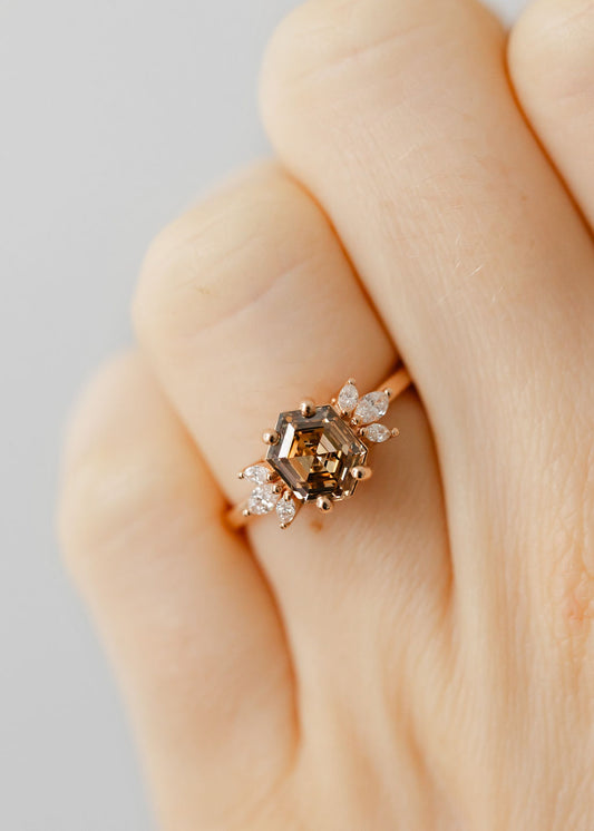 The Mini Luna | 1.65ct Cognac Hexagon Diamond | Rose Gold
