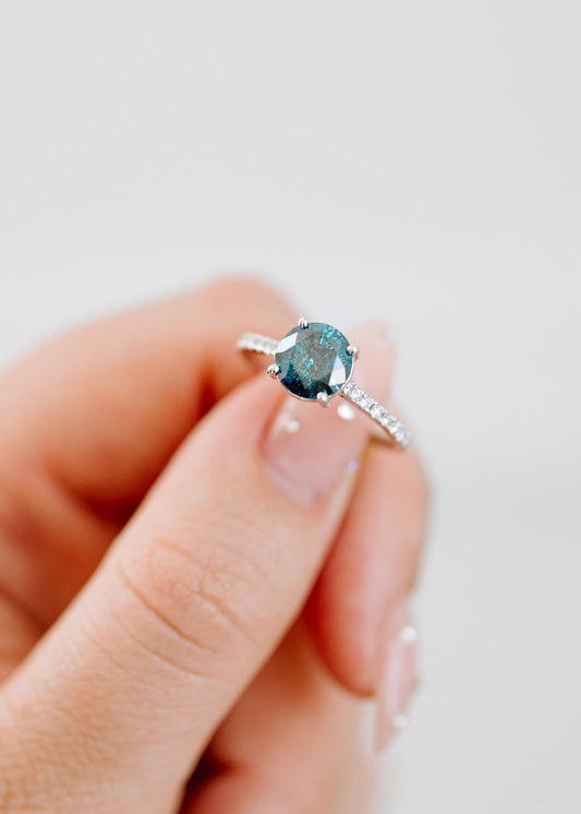 The Aurora Ring | 1.66ct Salt and Pepper Color Enhanced Blue Diamond | White Gold