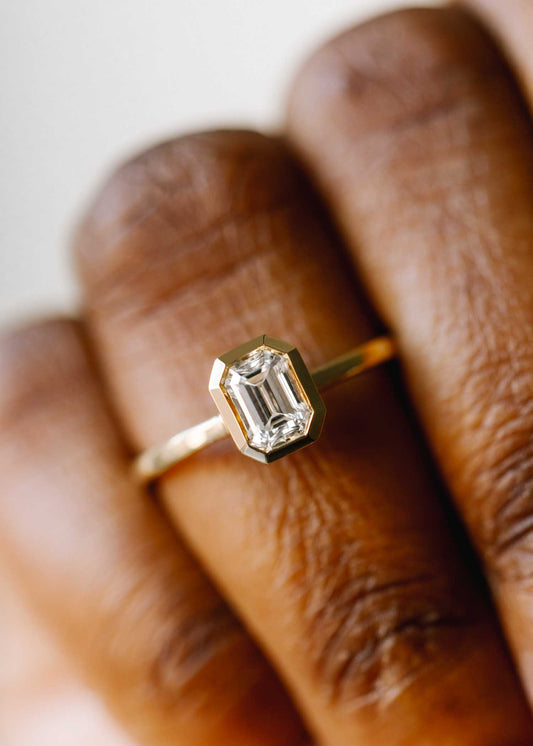The Leda | .64ct Emerald Cut Diamond | Yellow Gold