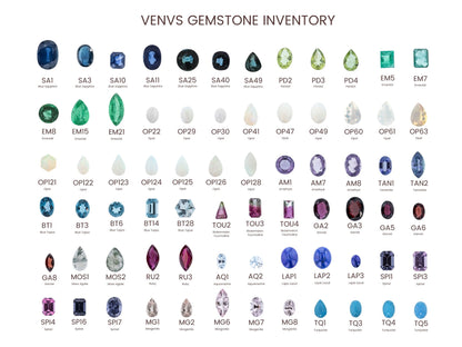 Any of VENVS’ stunning stones can be the heart of your ring. To lean into your darker side you can choose a salt and pepper diamond, really leaning into the Eclipse name. Maybe you like an antique engagement ring? This style would pair beautifully with a classic emerald. There is no wrong way to accent this ring.