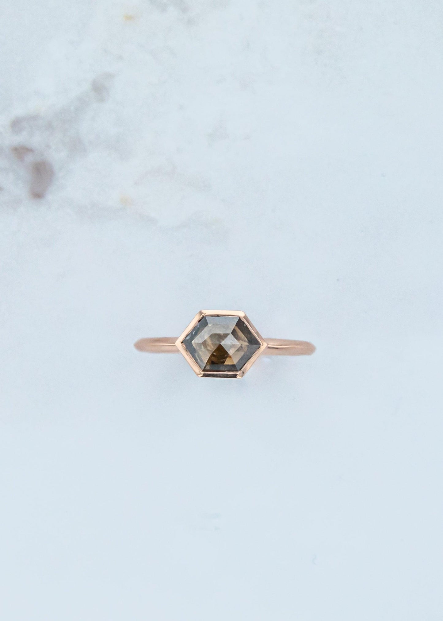 The Leda is a simple, unique solitaire ring. The bezel set beauty makes sure your stone is the focus, and allows the allure of your chosen centerpiece to shine through. This ring is perfect for you if you want a muted and classy ring.