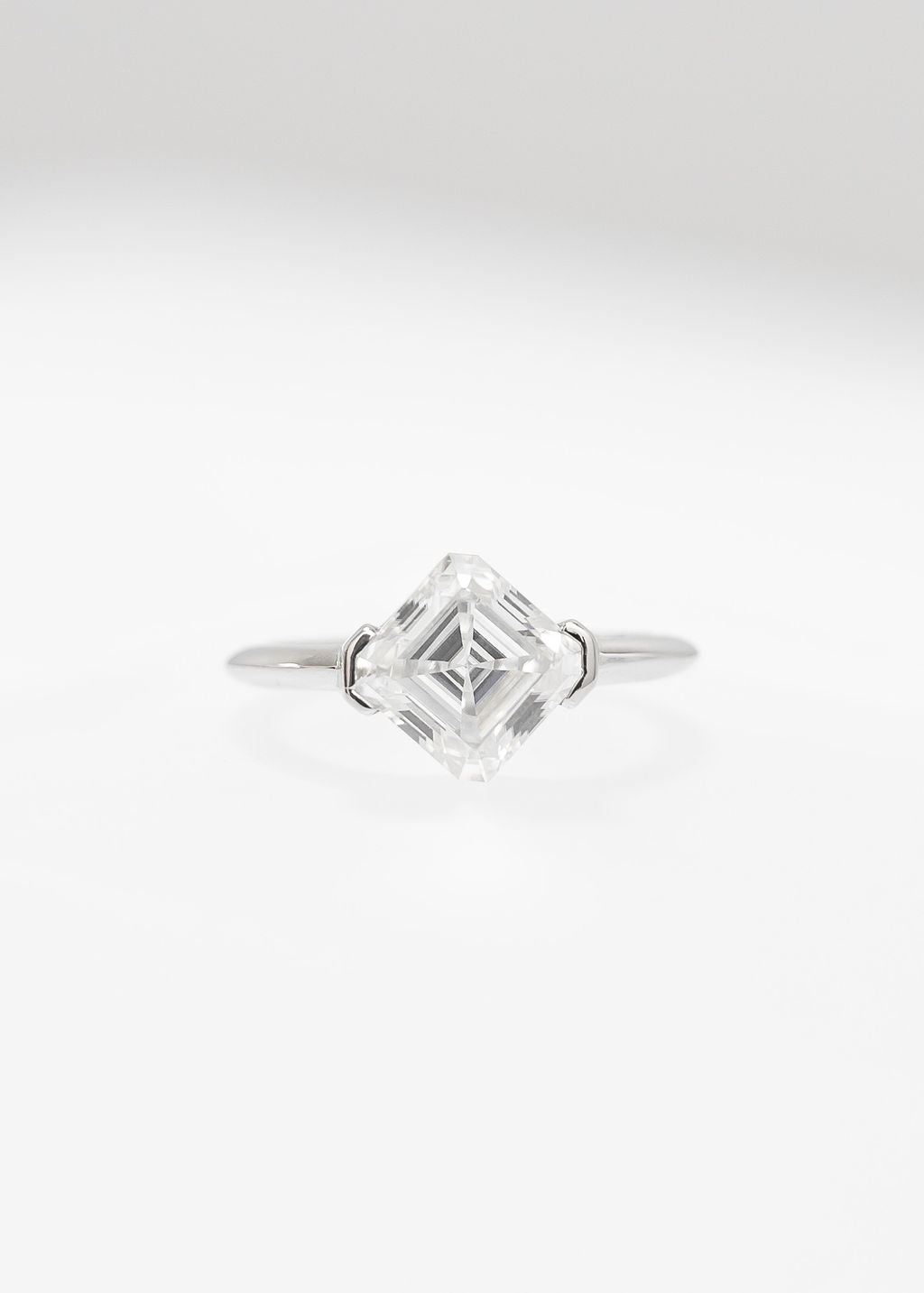 - Center Stone: 2.58ct Asscher-Cut Moissanite (Ethical & Sustainable)