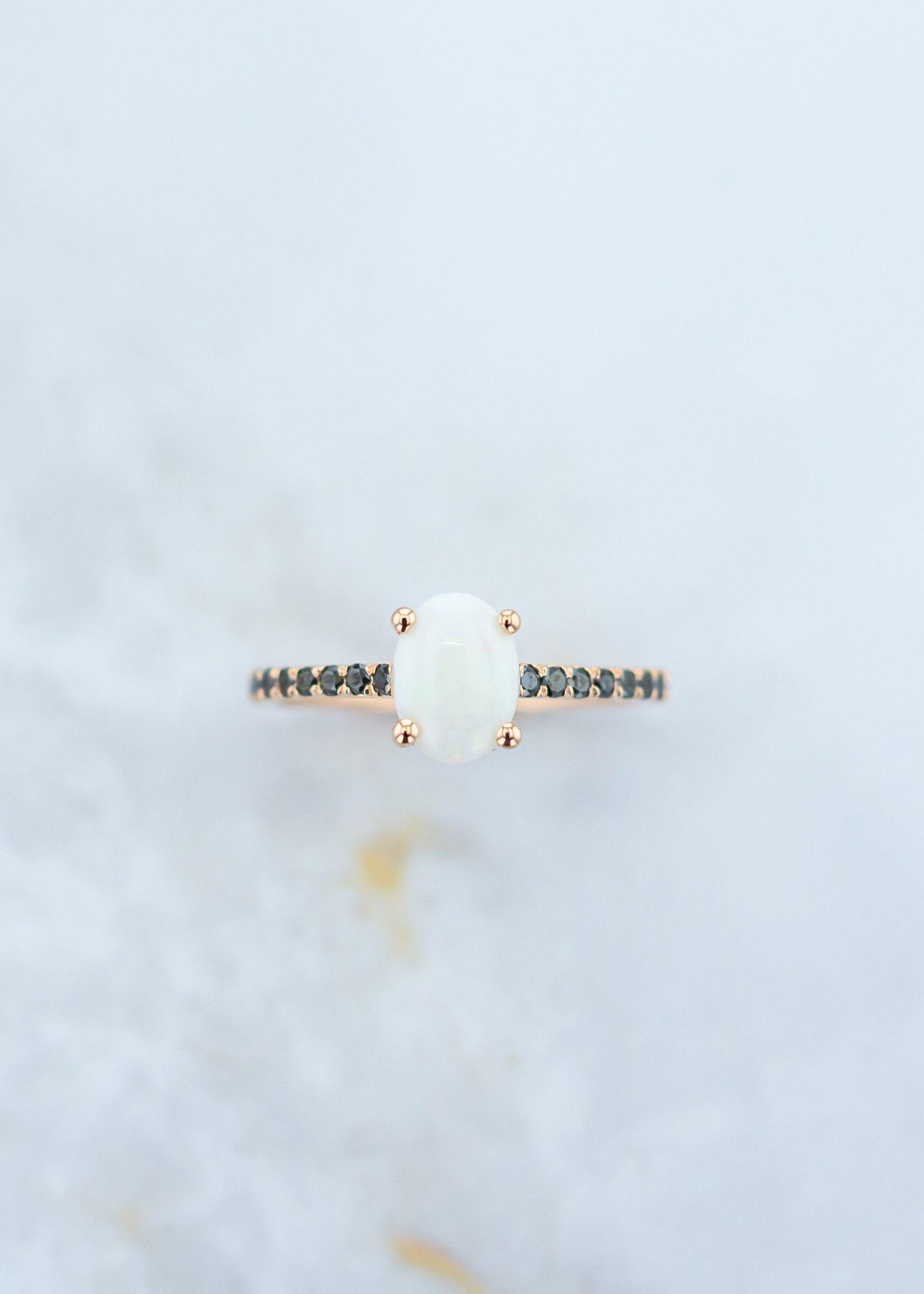 The Jett is a unique solitaire ring that knows which punk bands you listened to in middle school. This stunner is adorned with a 16 black diamond pave band, meaning you can still have a black diamond engagement ring no matter which stone you choose as your centerpiece.